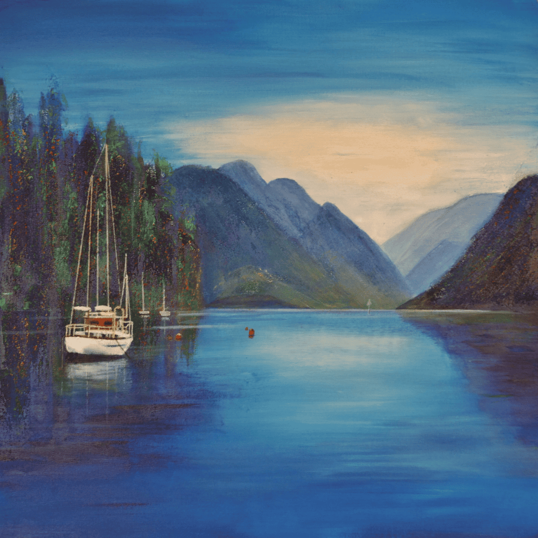 This is a very serene painting of the beautiful Queenstown Bay in the South Island of New Zealand. It is very colourful, highly textured and is a very peaceful scene. It would be a wonderful memory of a visit to this beautiful area, or a reminder of the wonderful area in which you live.