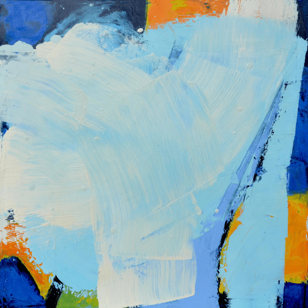 This colourful series of four small paintings celebrates the exhilarating surf culture of Yallingup, distilling the energy and movement of its legendary waves into striking compositions of shape and colour. Each piece is a dynamic abstraction of the ocean, where sweeping curves and layered hues suggest the powerful motion of rolling swells and the rhythm of the sea. The colour palette is a fusion of deep blues, turquoise and aqua, evoking the pristine waters of Yallingup’s famous surf breaks, while pops of yellow and orange add warmth to the composition and suggest the notion of surf boards, wetsuits and flippers.