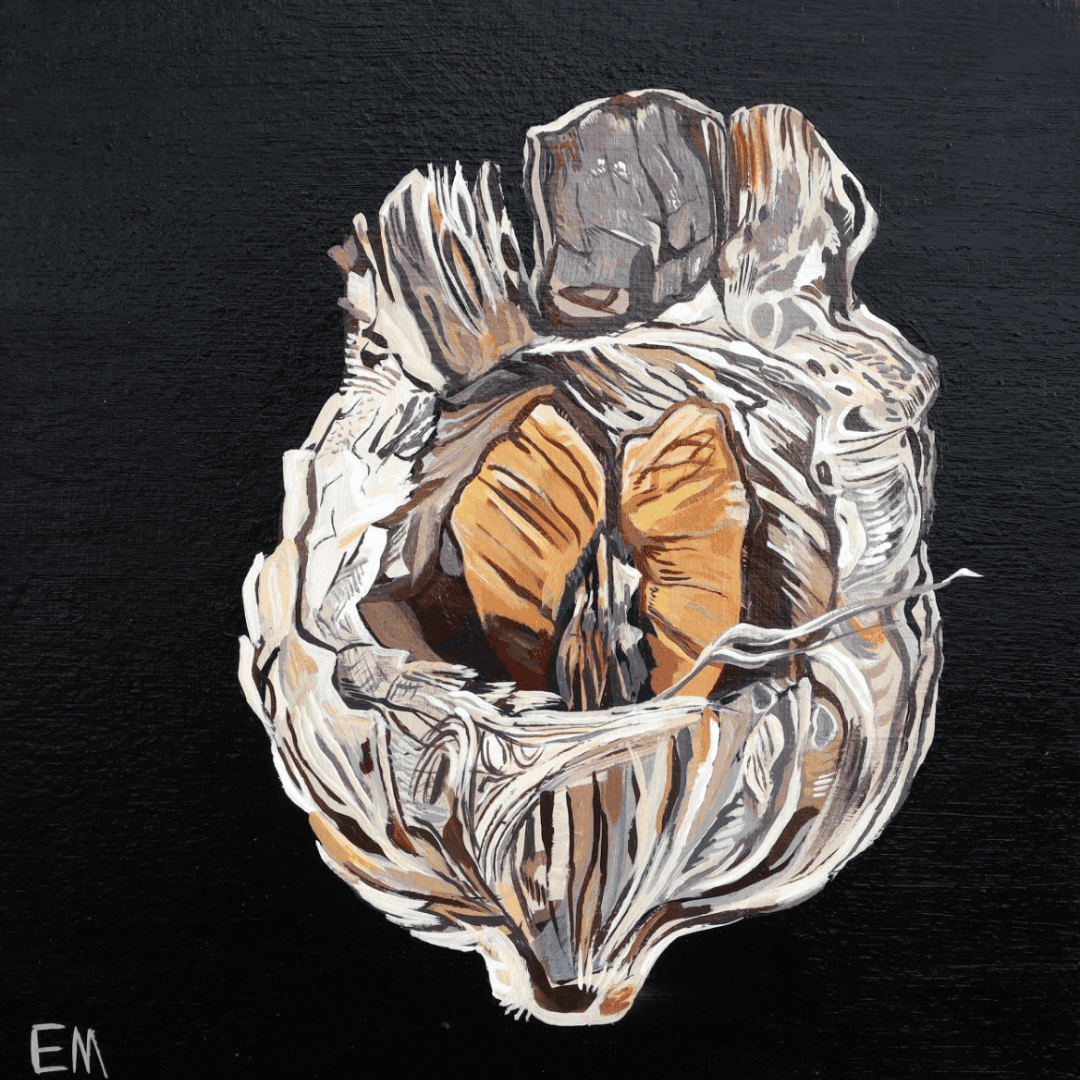 This painting captures that moment when you finally collapse onto the couch, you finally sit down after running the hamster wheel all morning, but your cup of tea has gone cold. The only food you had the energy to make was to throw some crackers into a bowl. This is the epitome of ‘mum life’.