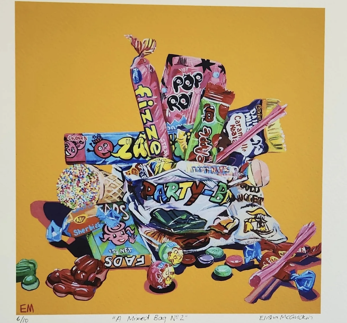 A collection of candy, a feeling of nostalgia. This popular print is available as a limited edition. It is perfect for those with a sweet tooth.