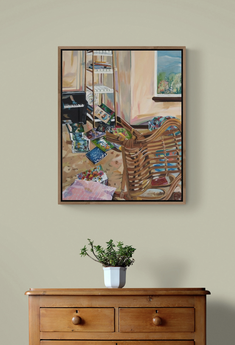 This painting is vibrant, nostalgic and a fun look into parenthood. It will add a talking point to any room.