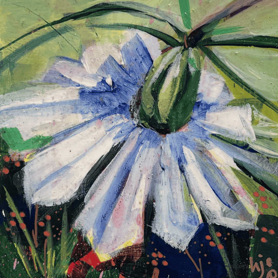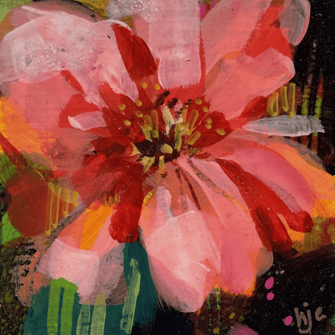 This richly layered acrylic painting is created on a sturdy handcrafted wood panel and finished with three coats of gloss medium to bring out the depth of colour and texture. It’s presented in a hand-sanded pine float frame, waxed to a soft sheen that complements the work without overpowering it. The final surface is gently taken back with beeswax to a beautiful satin finish that catches the light just right.
