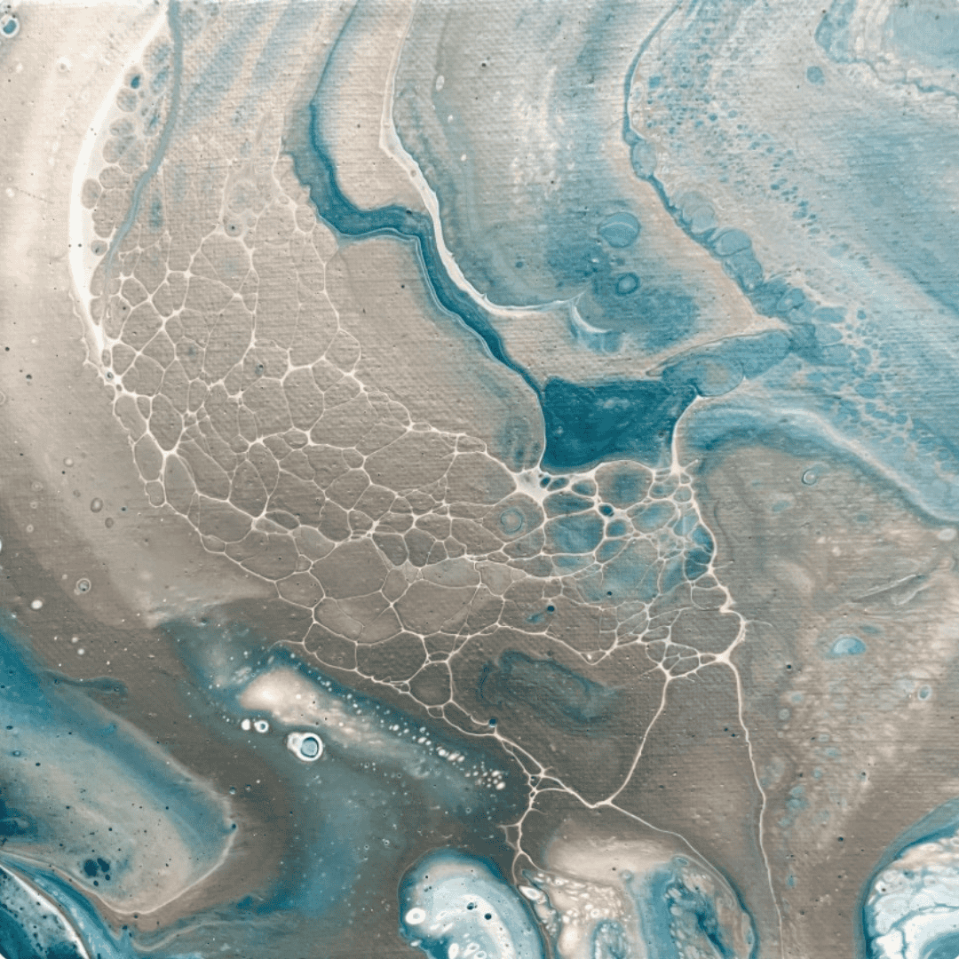 Tranquil tones and coastal hues wind and wander upon the canvas in this small but strong abstract piece. Escape to Crystal Cove.