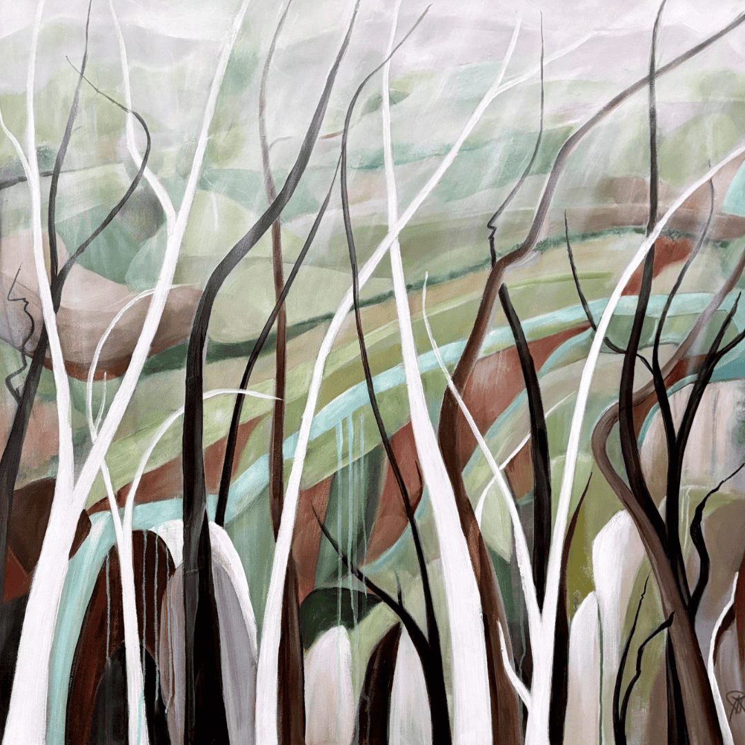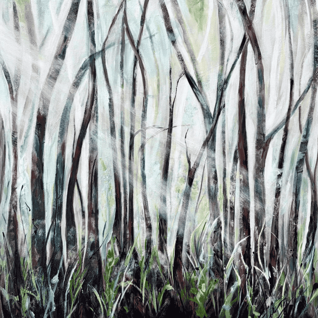Working with textures to create an abstract view of life has developed from my love of all things living and, of course, the trees being my go to connection to life. This painting is abstract and has several layers depicting life, past and present.