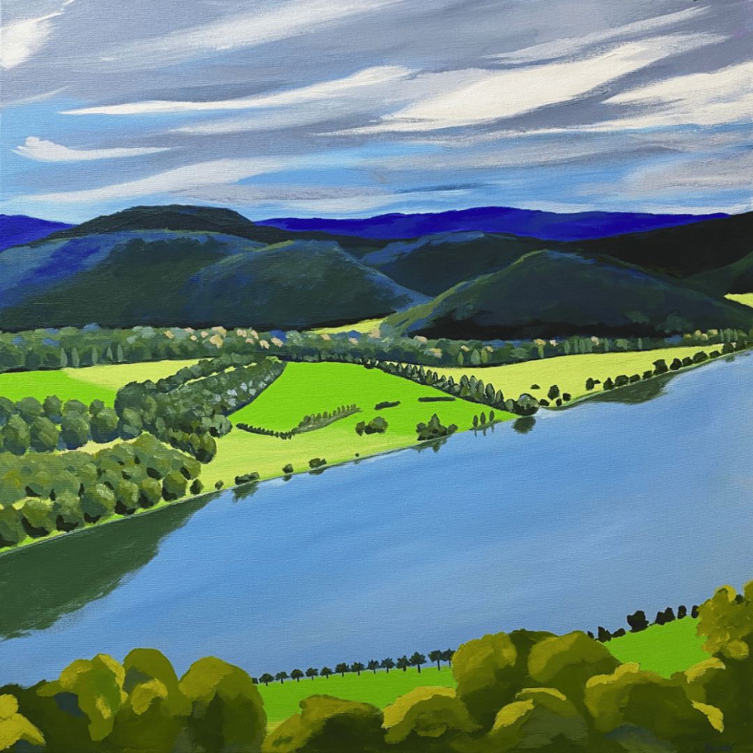When the Sun Tried to Shine is a painting I made after visiting the Hawkins Lookout Reserve near Wisemen's Ferry, north-west of Sydney. This spot is true river beauty without having to travel too far. We've visited this area many times in the middle of winter (until Covid and flooding started messing with our plans!) and it blows me away every time. It's secluded and peaceful and the view from this lookout is quite breathtaking.