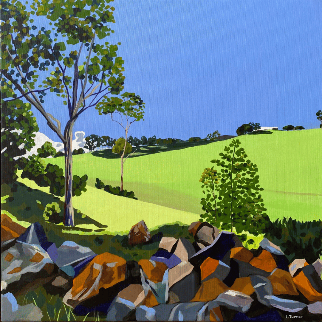 I started painting the Tilba series back in 2019 and it has developed over time to incorporate bolder, brighter colours as it moves further away from the visual reality, yet closer in many ways, to the feeling of the area. Tilba is such a beautiful place with its rich soil and rolling hills, just a stone's throw from the ocean. I can't wait to get back there!