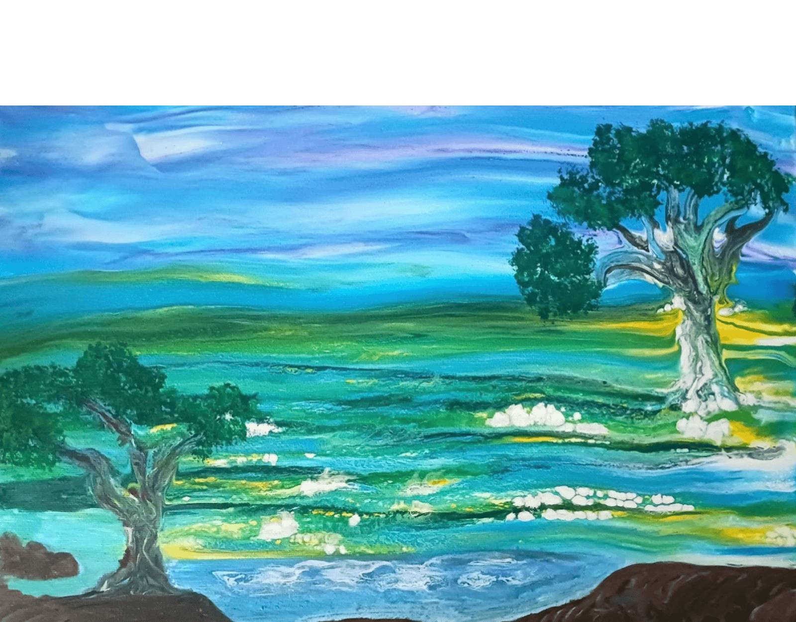 This piece drifts with fluid energy, where bold pinks, teal washes and soft drips blend effortlessly. Vibrant yet calm, it's layered forms feel like fleeting thoughts captured on canvas, inviting quiet reflection and personal interpretation.