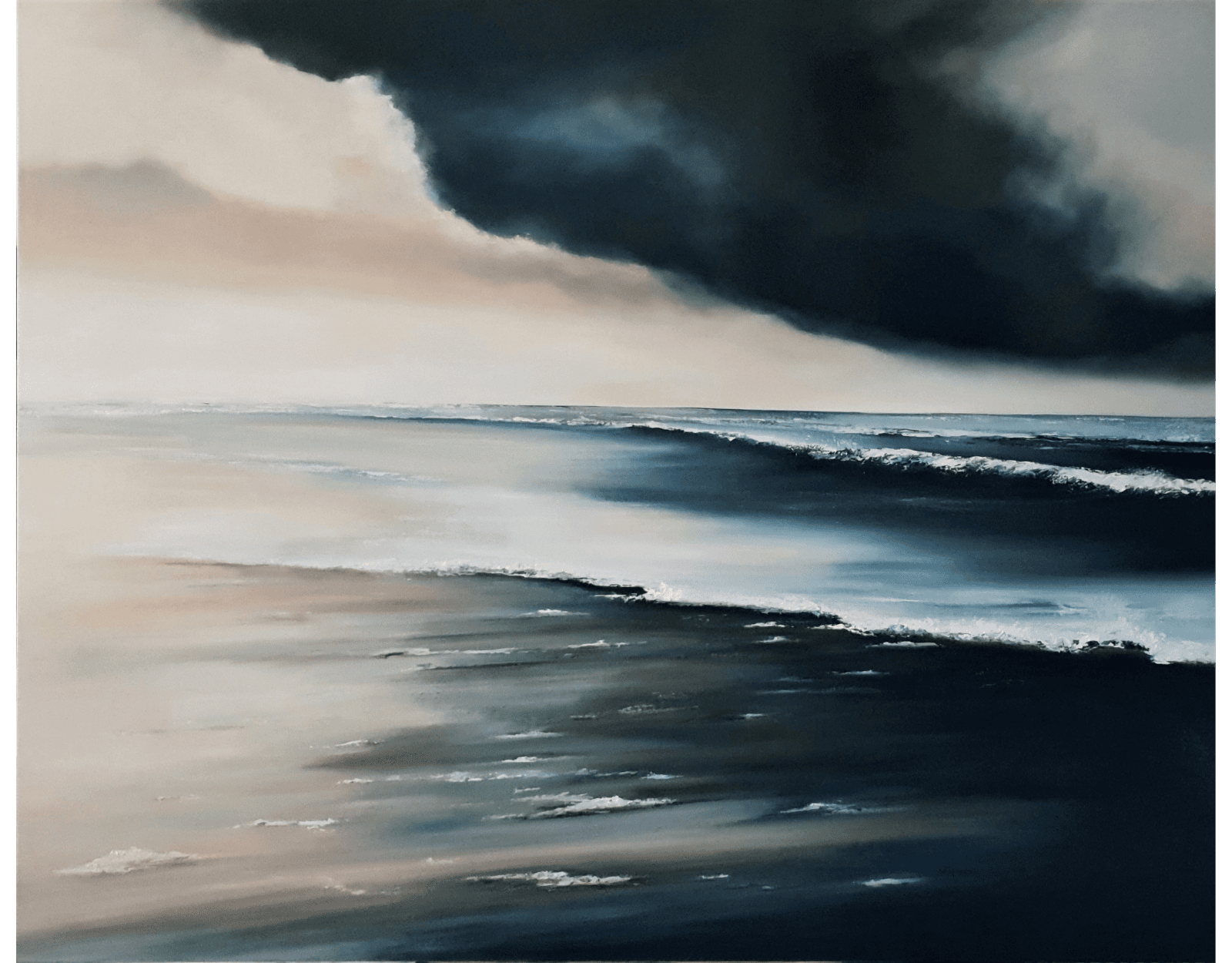 The expansive composition evokes a sense of water, waves and rippling tides, inviting the viewer to immerse themselves in the tranquility of the ocean.