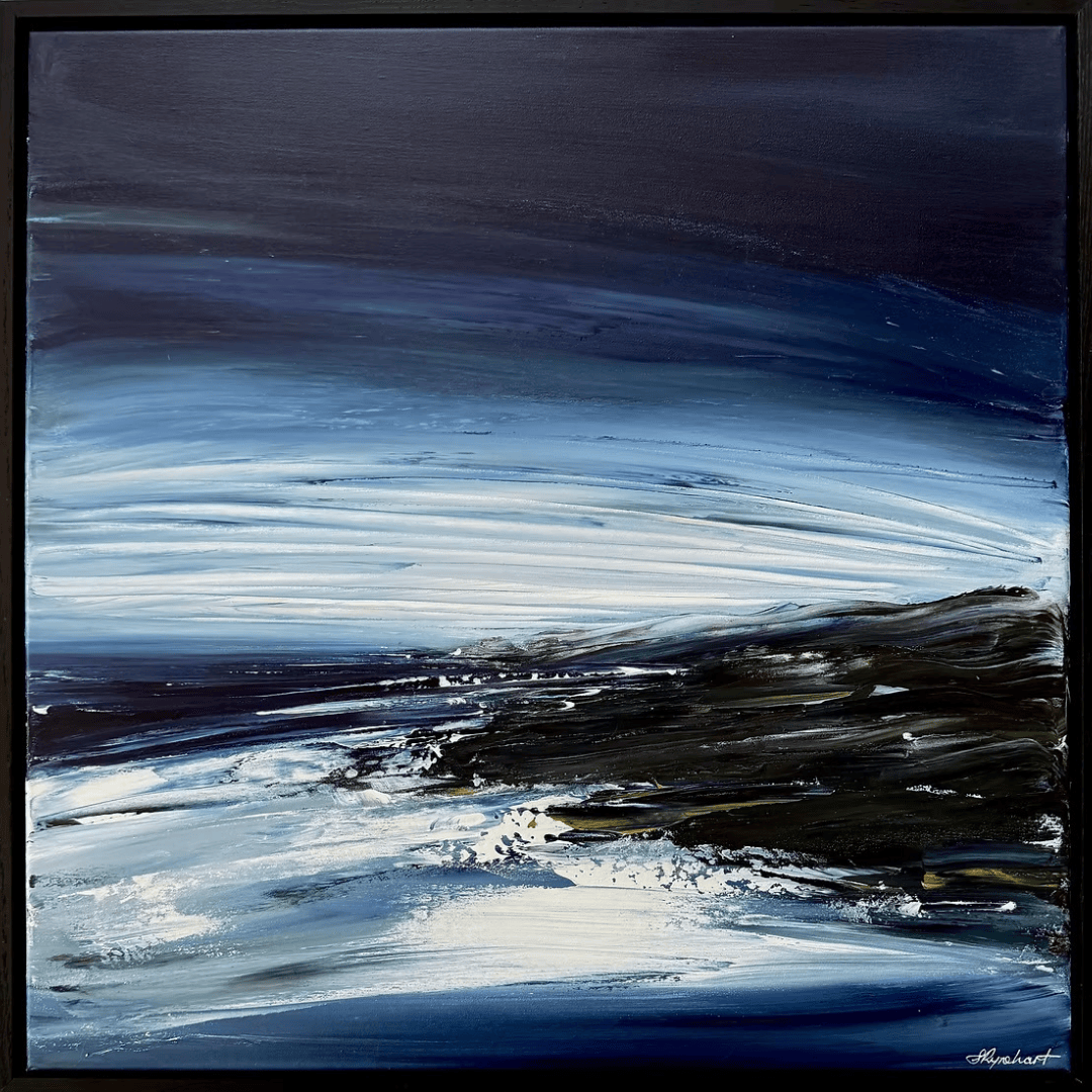 This expressive and dramatic coastscape was the first painting created after a recent traumatic event. A reminder that however dark the day may be, however deep the pain, the confusion, the unknown...light follows.NB: While every effort is made to capture the true colours and details of my artwork, every screen is different and art viewed online does not do my work justice. Slight differences may be evident between a screen image and the true tone and textures of my work, which is more vivid and beautiful in reality.