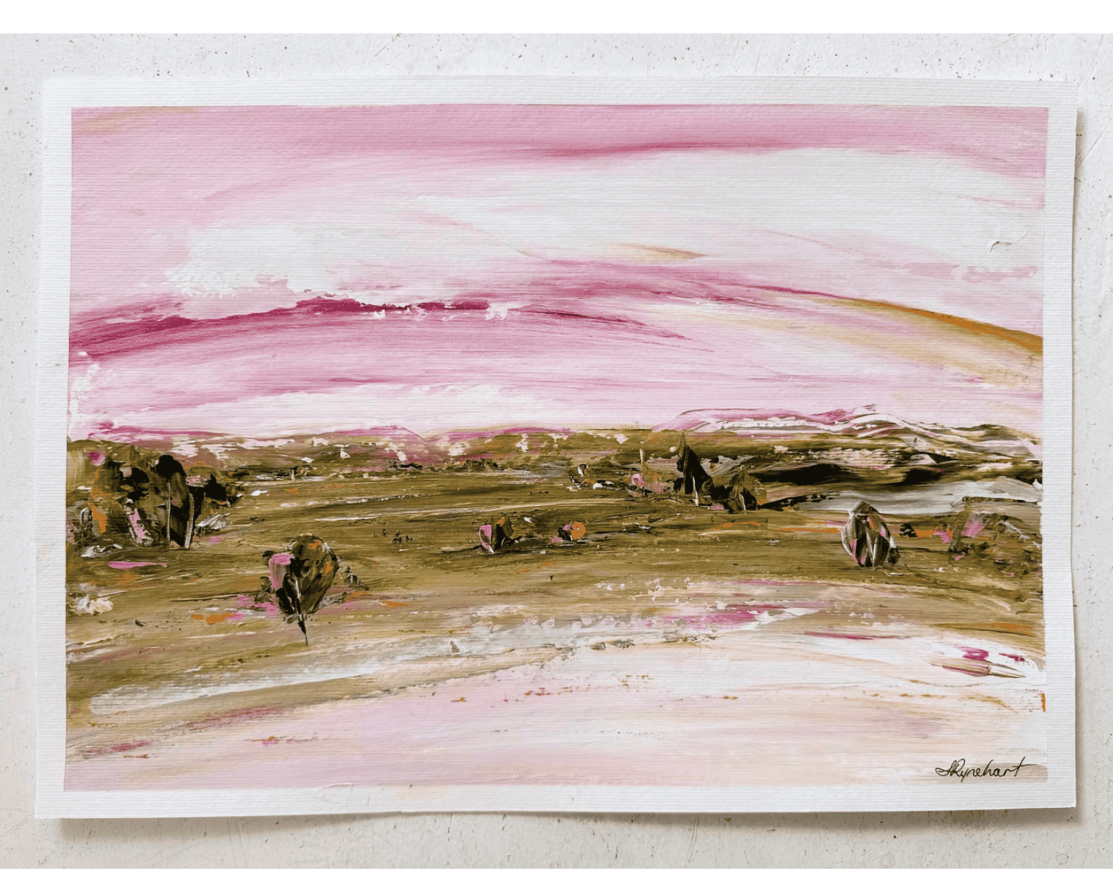 Living on the leafy outskirts of Canberra with views to the Brindabella ranges, and a protected nature reserve close by, Sharon is constantly inspired by trees and mountain ranges, beautiful sunsets and colour formations. The coast, however, is her absolute passion. With the NSW south coast not far down the road, influences emerge from the refracted light through the moody clouds and ocean waters, to the lush headlands and breezy shorelines, to the scenic roads, hills and valleys she travels to and from. These road trips to the coast, and back to her childhood home town of Wagga Wagga, are also a huge inspiration for her sought after roadscapes, often incorporating her signature pink road. Also highly sought after, are her figurative beachscapes that capture quiet moments alone or with loved ones on the sand.