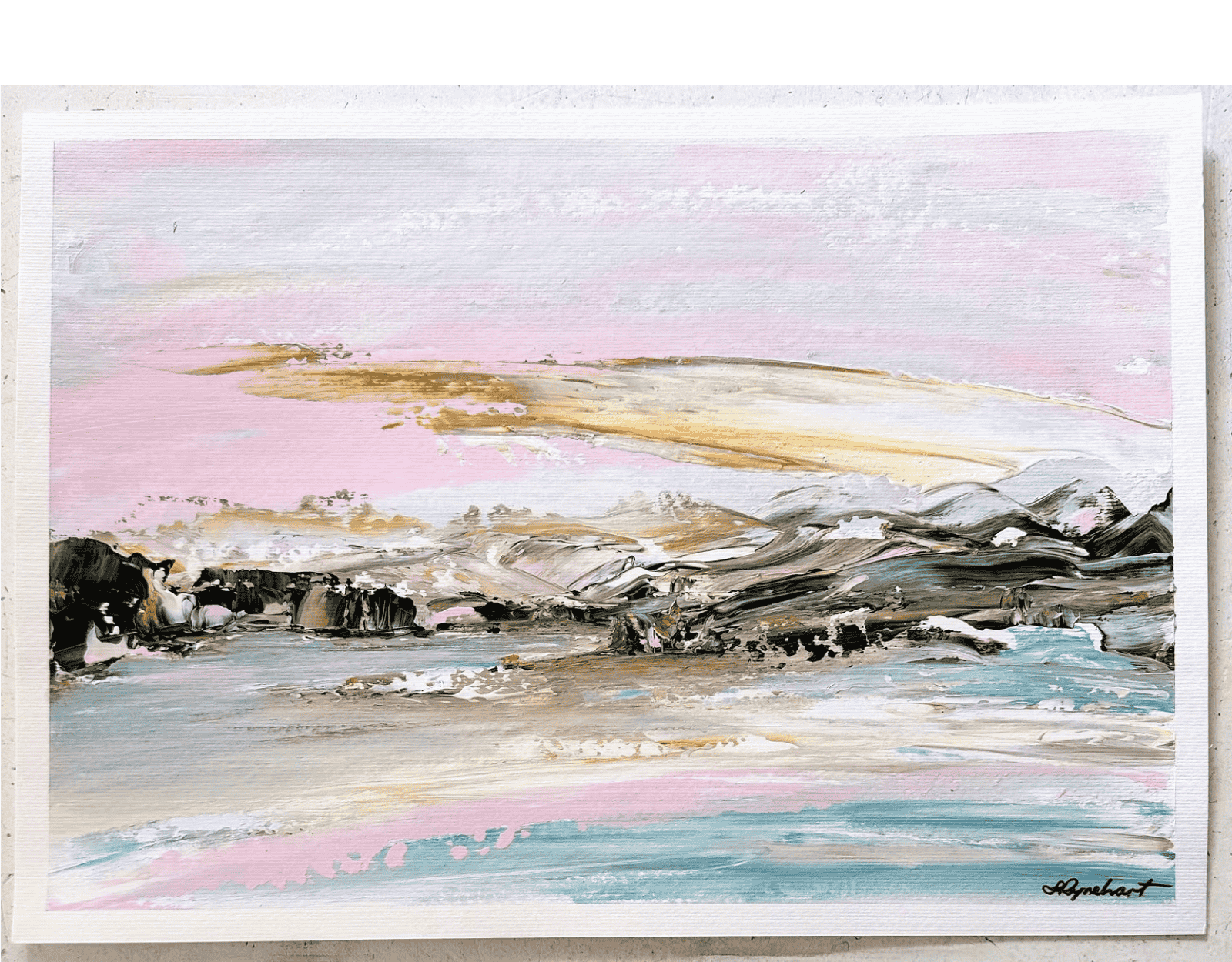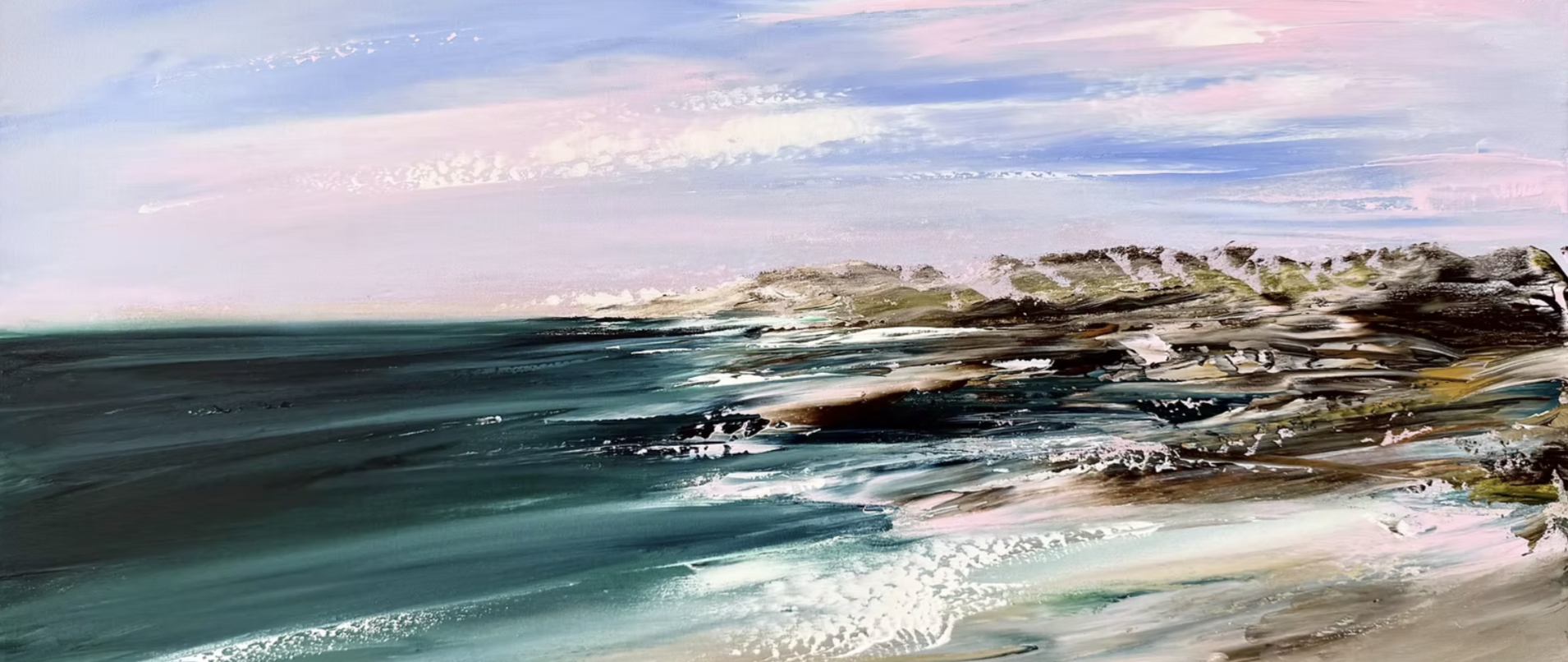 Sharon Rynehart is an impressionist palette knife artist recognised for her flowing, expressive style of the sea, land and sky. An interior designer and colour consultant now turned artist after health issues in 2018, she adores the word ‘heartwork’ (apart from the slight reference to her surname), as it describes her process perfectly. She uses her background in colour theory to create beautiful colour harmonies, painting emotive artworks from the heart that allow you to reflect on your own story, to finish the train of thought, to remember a time or place, and to explore and feel the emotions they still. Sharon creates artworks that are relatable, that invite you to reflect, force an exhale, evoke a sense of calm and bring you hope.